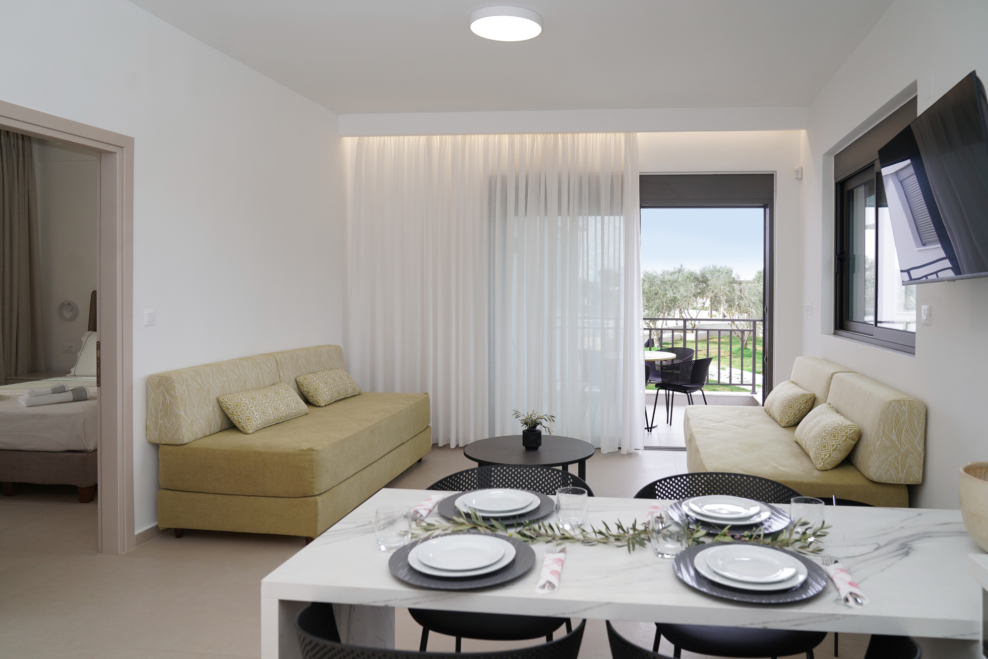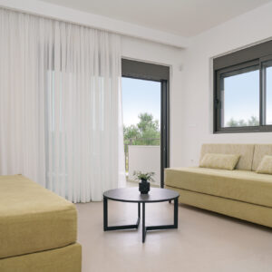 Στην πράσινη καρδιά του Τερσανά, η Villa Green ξυπνά περιτριγυρισμένη από το «μουρμούρισμα» των ελαιόδεντρων. Η φαρδιά της βεράντα γίνεται μια σκηνή για τον ήλιο, ενώ ο ιδιωτικός της κήπος απλώνεται σαν μαλακό χαλί, οδηγώντας στην κρυστάλλινη δροσιά της πισίνας.