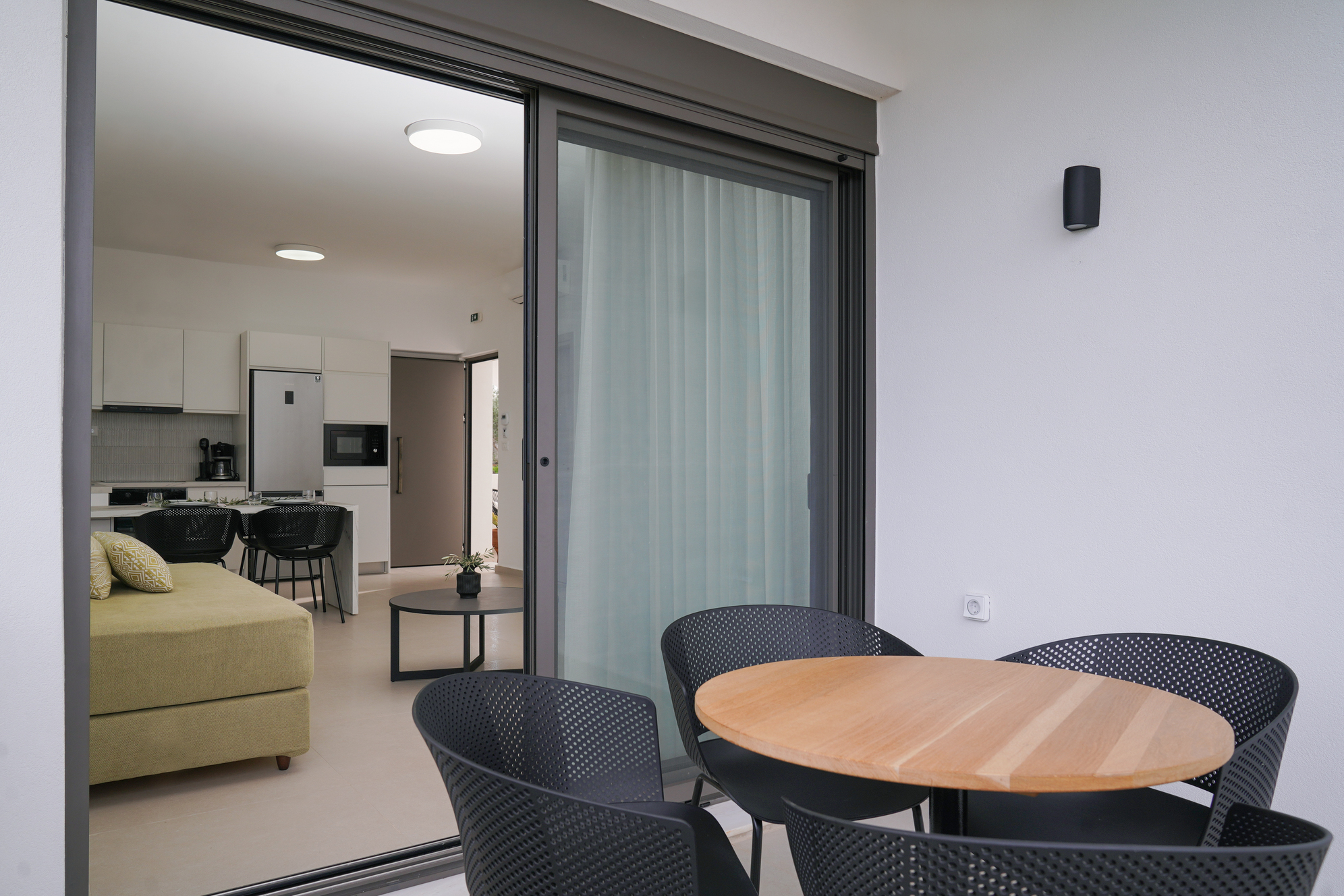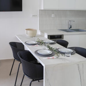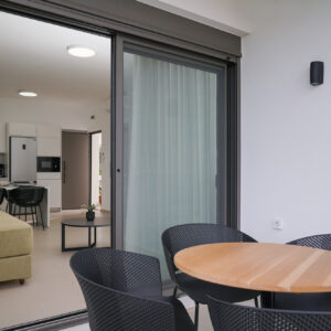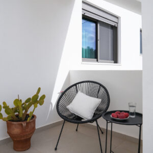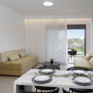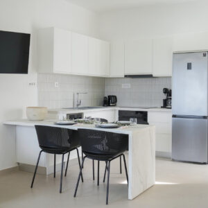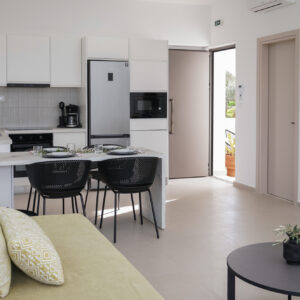 Στο εσωτερικό, η αύρα του κλιματισμού μεταφέρει την ευωδιά των βοτάνων, ενώ από το μπαλκόνι ο γαλήνιος ουρανός μοιάζει να βρίσκεται σε απόσταση αναπνοής. Η πλήρως εξοπλισμένη κουζίνα δίνει την υπόσχεση για κοινά γεύματα και στιγμές χαράς, με τη στήριξη σύγχρονων συσκευών και την άνεση ενός πλυντηρίου ρούχων. Το δωρεάν WiFi συνδέει αθόρυβα τις στιγμές της γαλήνης σας με τον υπόλοιπο κόσμο.
